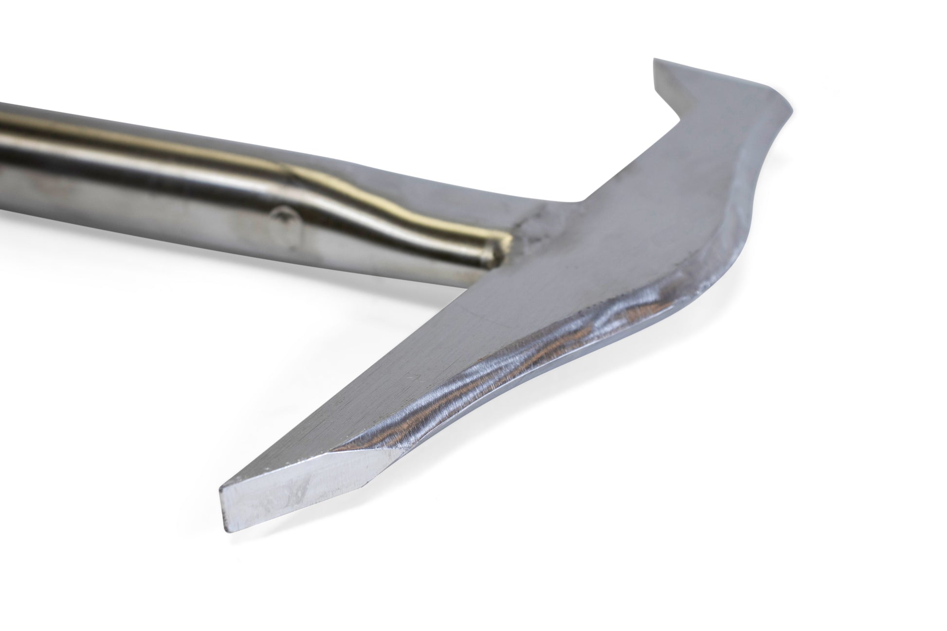 The Spade Tip features a piecing leading edge, pointed tip and short hook. Ride joists to perforate and open up whole sections. Attack plaster and lathe parallel to slip in-between and rotate for a deep pulling edge. Use the short hook to ride wall faces and easily pry trim and boards down.