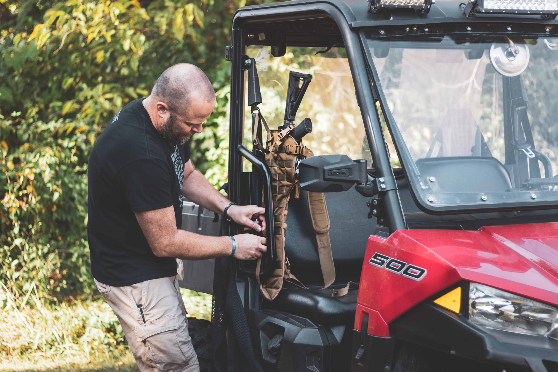 - MOLLE rifle scabbard available in Black and Coyote Tan