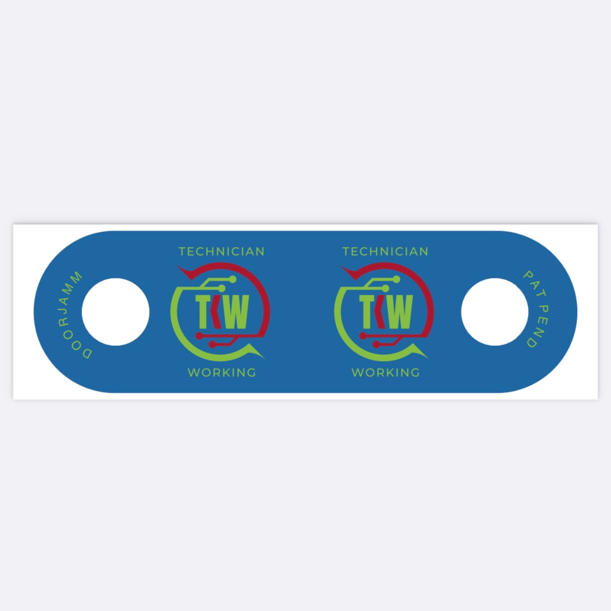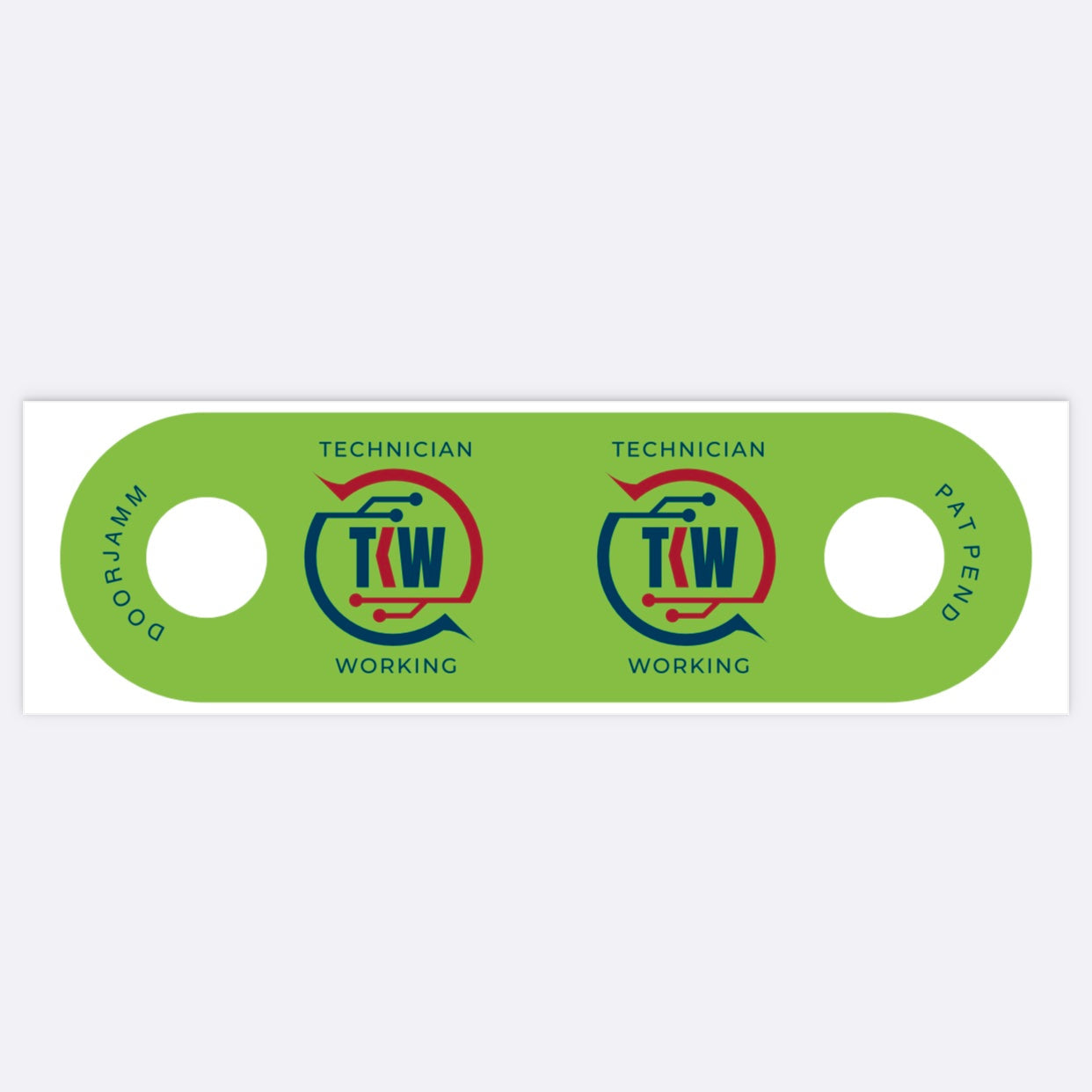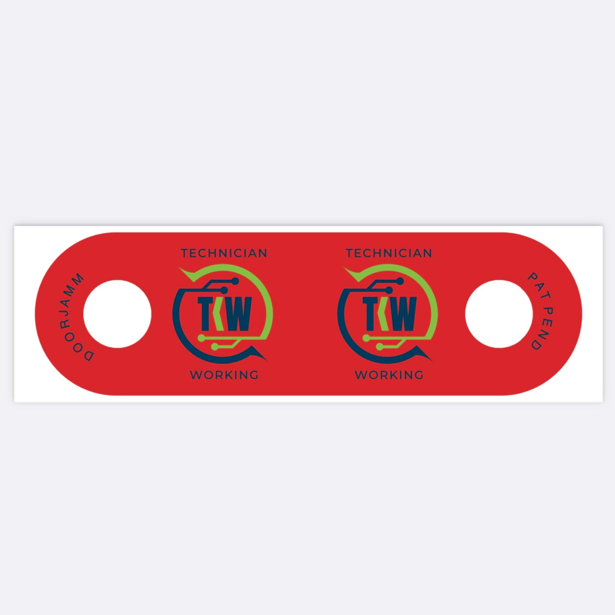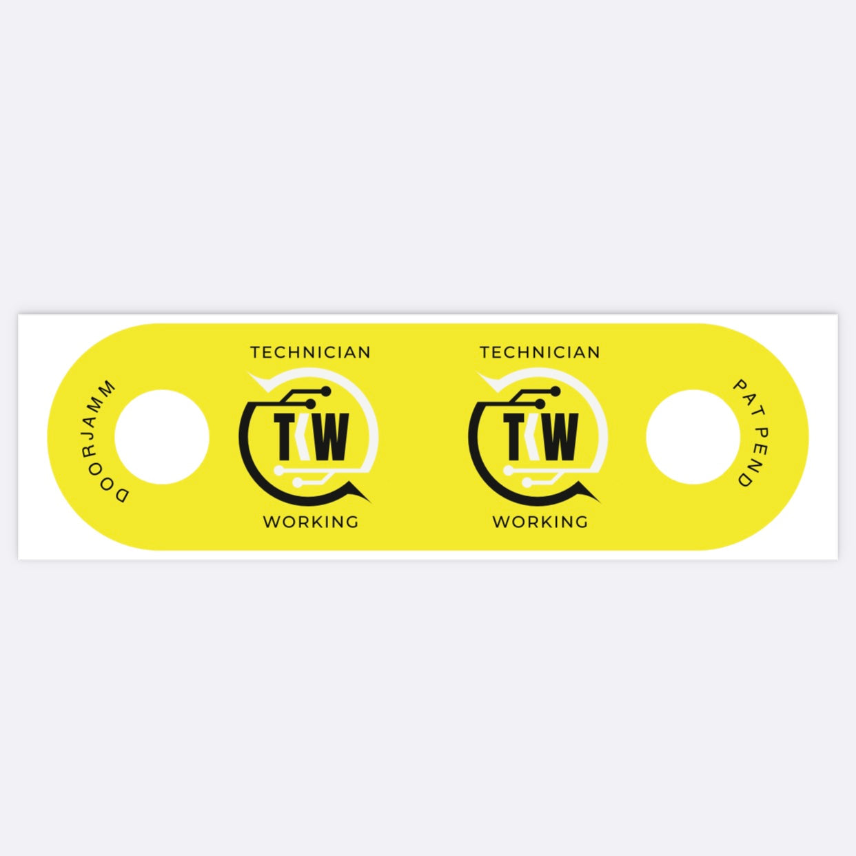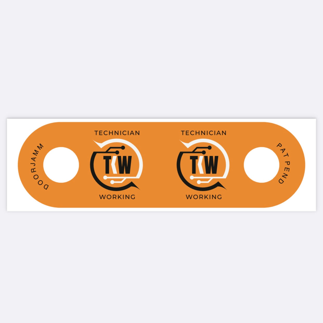 This printed DoorJamm is clearly marked with the TeKnowldege Worldwide (TKW) logo and "TECHNICIAN WORKING" on both ends.
