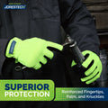 - PROTECTIVE PALMS: Resistant synthetic leather palms deliver superior protection and abrasion resistance.