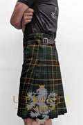 Irish Black is a universal tartan designed in-house to reflect strength, heritage, and bold contrast. Its deep green base and bright yellow overcheck give a fresh, modern nod to Irish pride—with no clan or ancestral ties, it's wearable by anyone.