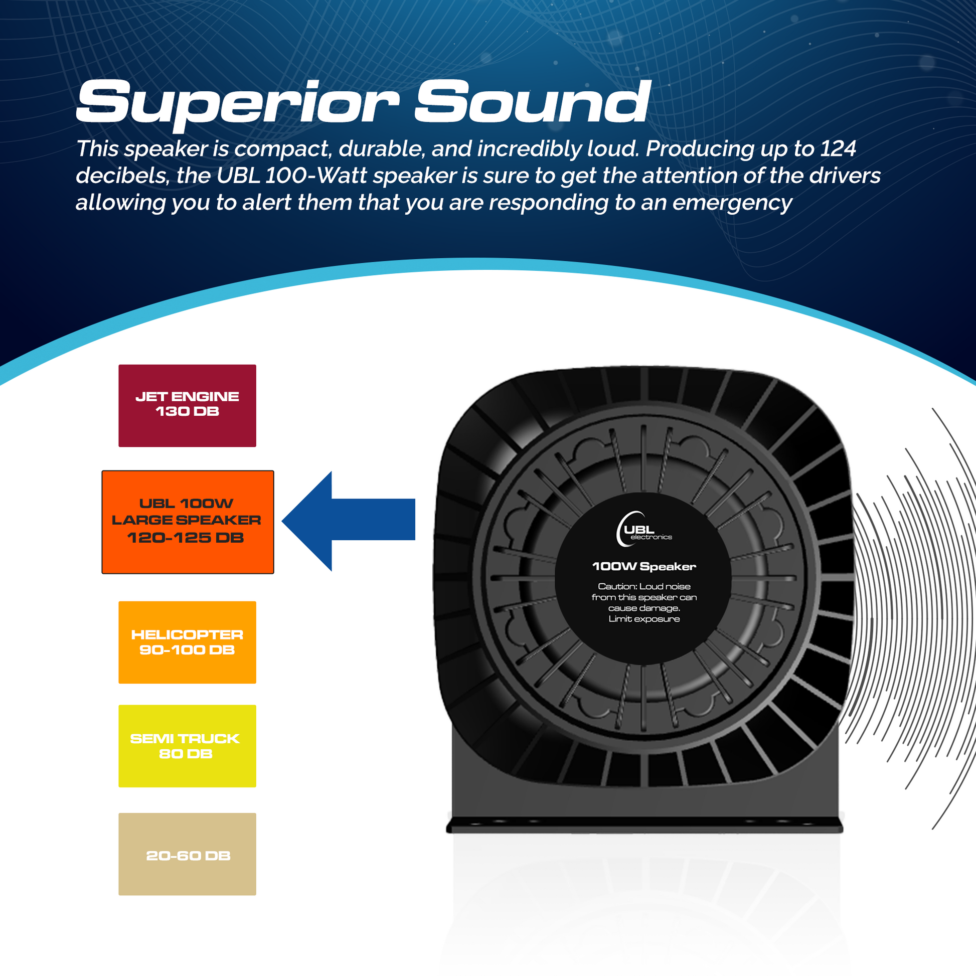 The UBL Large 100-Watt Speaker is engineered for maximum impact, delivering an impressive 124 decibels of sound that ensures your presence is unmistakable in any environment. This powerful speaker is designed to cut through ambient noise and command attention, making it essential for emergency responders who need to communicate clearly and effectively during critical situations. Its compact design allows for easy installation in various vehicles without taking up excessive space, while the robust polycarbonate housing ensures durability against impacts, extreme temperatures, and harsh environmental conditions. Ideal for firefighters, police officers, and other emergency responders, the UBL Large 100-Watt Speaker ensures you're heard when it matters most, providing clear and authoritative communication in the chaos of emergencies. Additionally, its universal compatibility with every 100-Watt siren on the market offers unparalleled flexibility, allowing seamless integration with existing systems. Equip your vehicle with the UBL Large 100-Watt Speaker and experience the difference in performance and reliability, knowing you have a speaker that can handle the demands of your critical role.