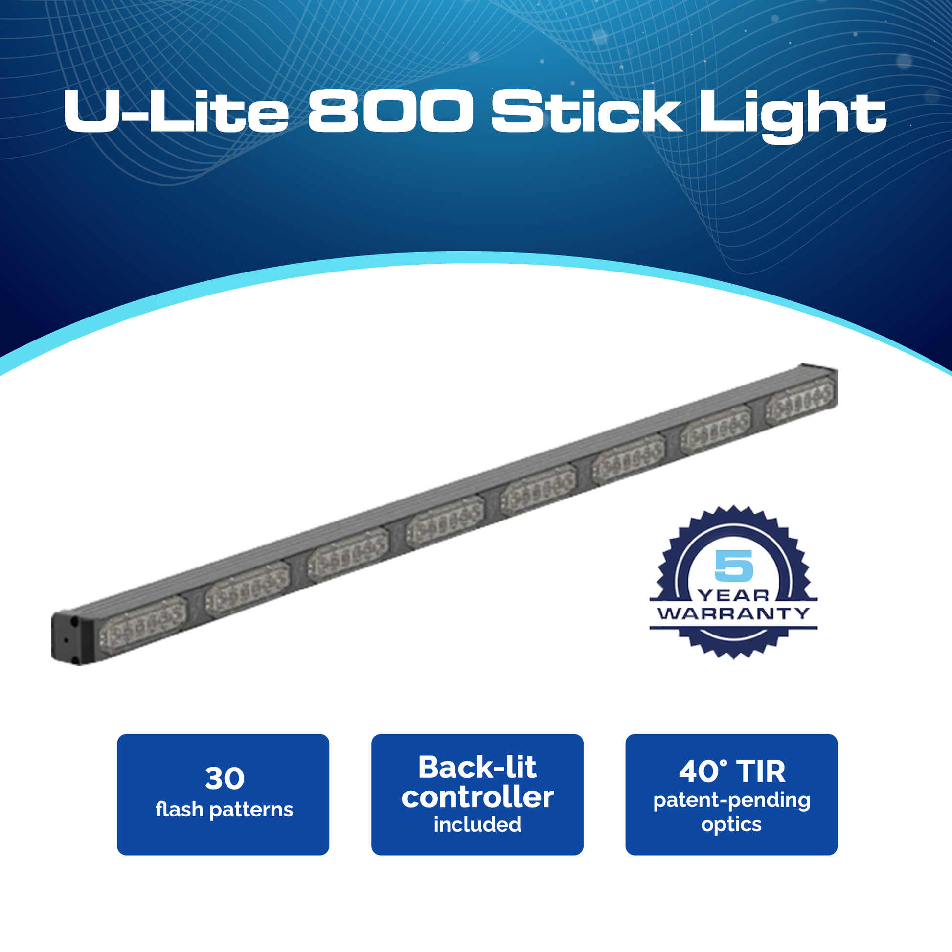 For superior visibility and easy installation, the UBL U-Lite 800 Stick Light is a perfect choice! This eight-head LED stick light comes with a damage- and weather-proof housing, built-in controller, and a backlit controller with a pattern-changing button and easy-to-use traffic advisor directional buttons. This stick light can work without the provided controller and be hardwired. The U-Lite 800 is great for emergency vehicles, firefighters, police, construction sites, and more, with four blinding bright LEDs in each module. Its slide-bolt channel allows for easy mounting on the grill, in the rear or side window, in virtually any position. Each module is available in four colors: amber, blue, red, or white. With 30 flash patterns and a cig-plug, the U-Lite 800 Stick Light provides superior protection and visibility in any environment!